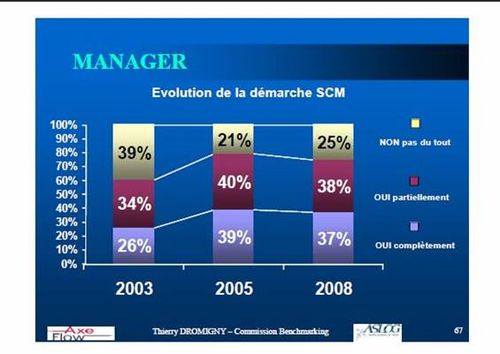 « Il est clair que réduire les stocks impliquerait pour nombre d'entreprises de tendre leurs flux, voire franchir le pas des flux tirés, donc changer l'organisation de leur Supply Chain et adopter de nouveaux outils de pilotage … », insiste Thierry DROMIGNY, «…ce qu'elles ne possèdent pas encore. Pour ne pas risquer une rupture de leurs livraisons, elles ne sont pas prêtes à réduire leurs stocks et à limiter leurs frais financiers ».
